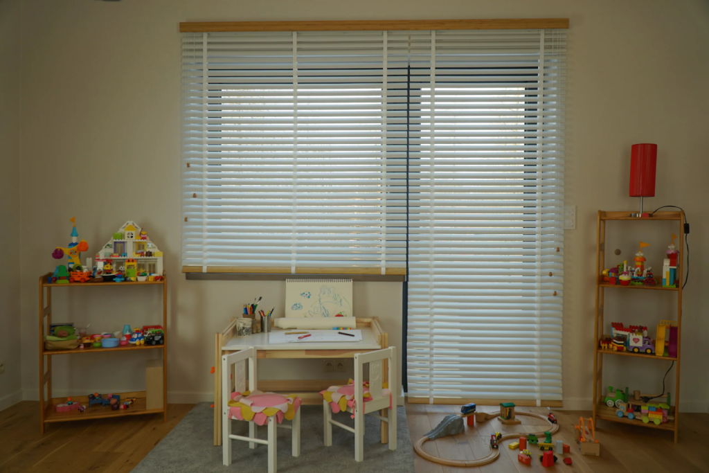 Jasne żaluzje w salonie, sypialni lub pokoju dziecka